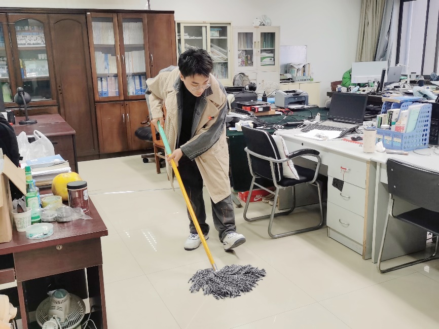 新学期伊始,大多数实验室都存在地面脏乱、桌面灰尘积聚、仪器摆放杂乱的现状,但是这并没有难倒支部党员们,他们率先拿起扫帚,微微弯腰,清扫地面的碎屑、灰尘;拿起抹布,认真地擦拭桌子,不放过任何一个角落。大家看到学生党员们积极主动、一丝不苟的服务态度,深受感动,也积极加入到清洁实验室的行列中。经过大家认真负责的清扫,实验室变得整洁明亮,焕然一新。