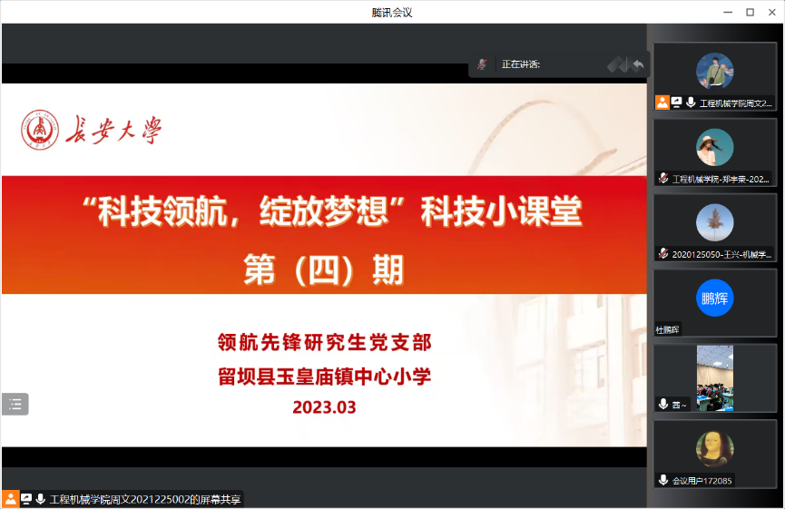 2023年3月23日,我院领航先锋研究生党支部为留坝县玉皇庙镇中心小学在线开展“科技领航,绽放梦想”科技小课堂第四期——《电路小实验》。此次主讲人为党支部成员杜鹏辉、李涛。