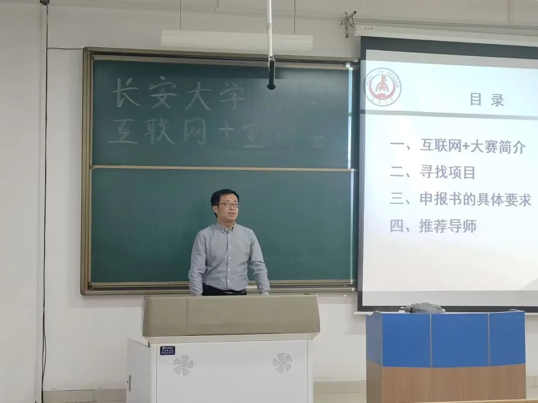 为了全面深化创新创业教育改革,提升大学生创新创业能力,加快培养创新创业人才,根据学校《关于报名参加长安大学第九届“互联网+”大学生创新创业大赛的通知》要求,2023年5月15日晚上19点,永利yl23411第九届“互联网+”大学生创新创业大赛宣讲会在鸿远教学楼1306教室举行。宣讲会由永利yl23411科协指导教师夏晓华主讲。