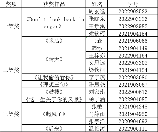 附:长安大学第二十三届大学生艺术节之“青春的我们” 校园民谣歌唱大赛获奖名单