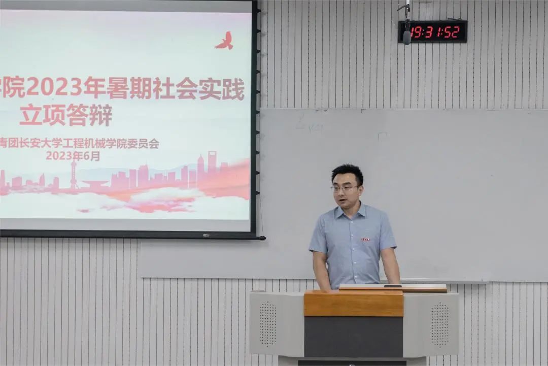首先,学院团委书记赵尉尉讲话。他向各团队强调了开展社会实践的重要意义,讲解了答辩过程中的注意事项,希望各申报团队能够充分展示自己的前期策划和实践安排。